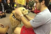 Therapy dogs visit library during finals