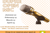 Poetry, spoken word, mime or whatever your heart desires. Watch and/or participate as talents are put on display. Drop in or reserve your spot at bit.ly/dupreopenmic