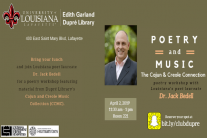 Bring your lunch and join Louisiana poet laureate Dr. Jack Bedell for a FREE hands on poetry workshop featuring material from Dupré Library's Cajun and Creole Music Collection (CCMC).