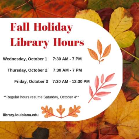 Our new hours begin Monday, October 6 at 7:30 a.m.