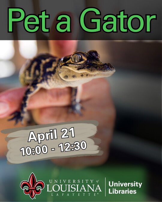 Join us on April 21 from 10:00 a.m. – 12:30 p.m. to touch and learn about baby alligators with the Louisiana Department of Wildlife and Fisheries.